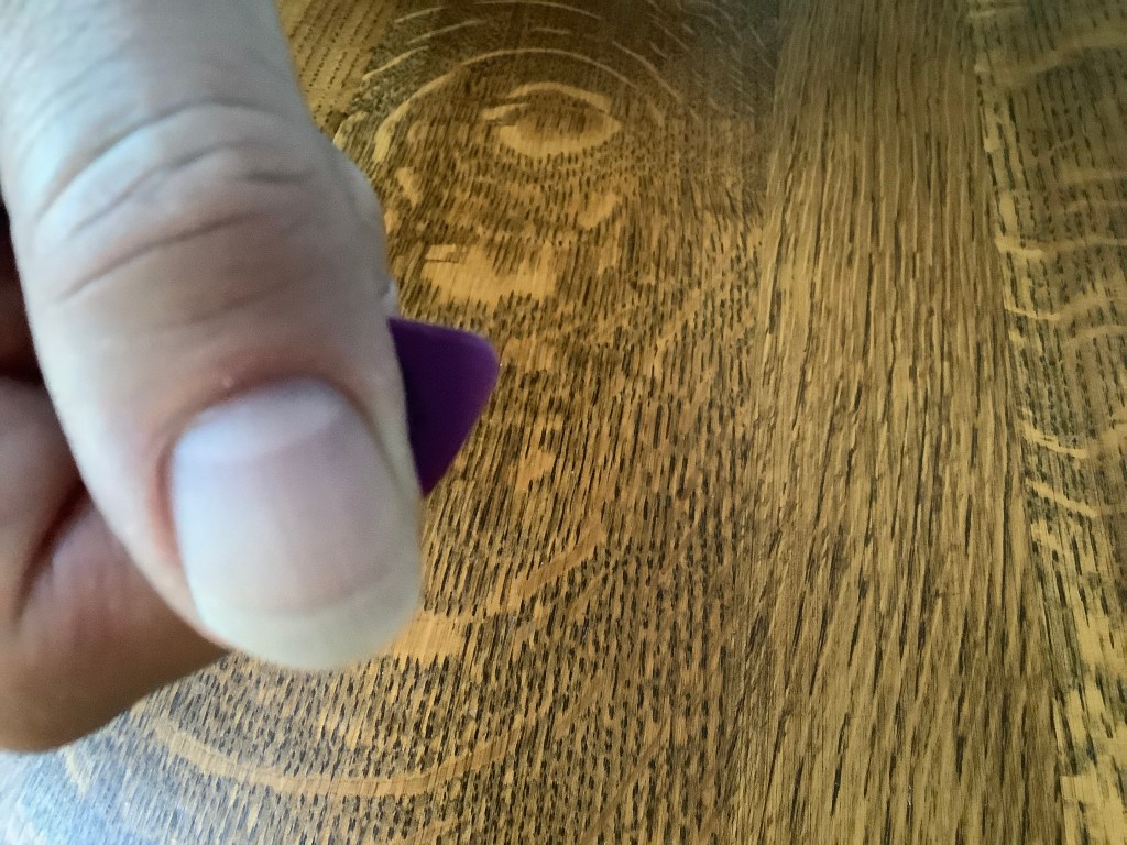About 10 years later, in the 1990s, I stumbled onto a Dunlop Tortex pick. It didn’t wear out as easily.