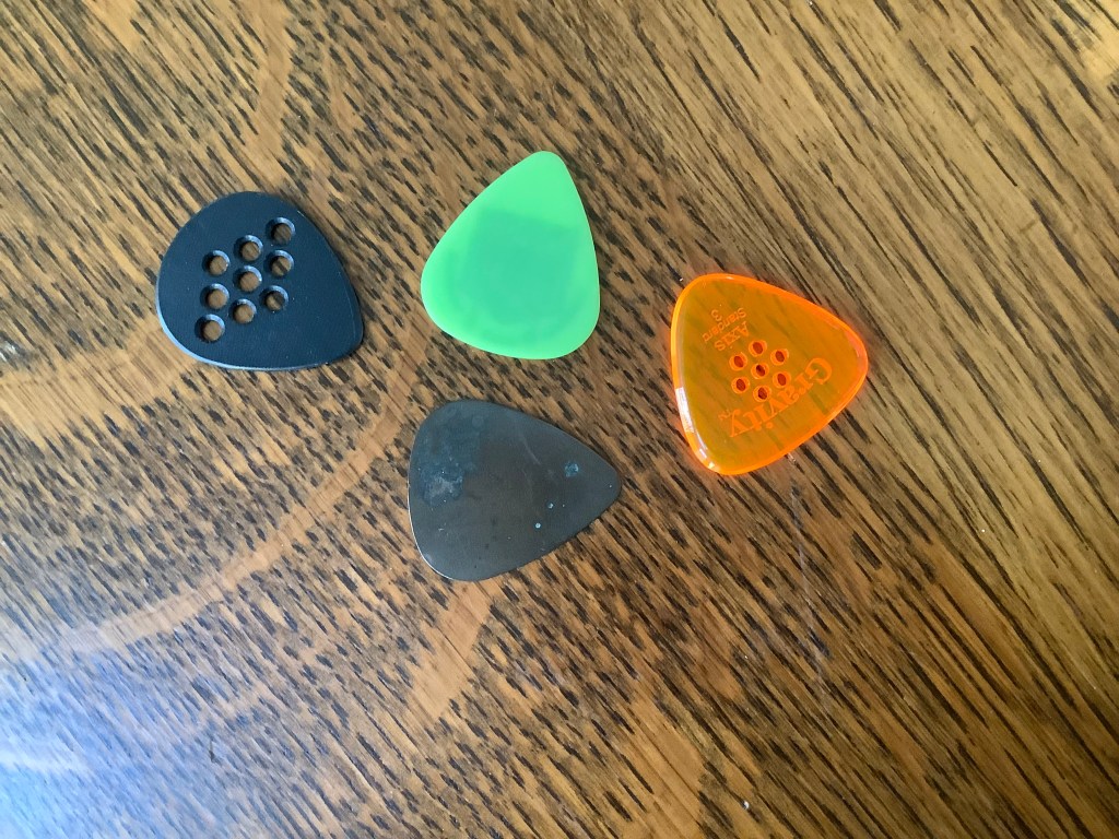 To be honest, pick preference is very personal and subjective. Luckily, picks are one of the least expensive items used by guitar players, so there can be room to experiment with these. If you end up with a batch of picks that you don’t like or don’t expect to use, you can do what I do and pass them on to someone else. Again, pick preference is personal so what you don’t like might work for someone else.